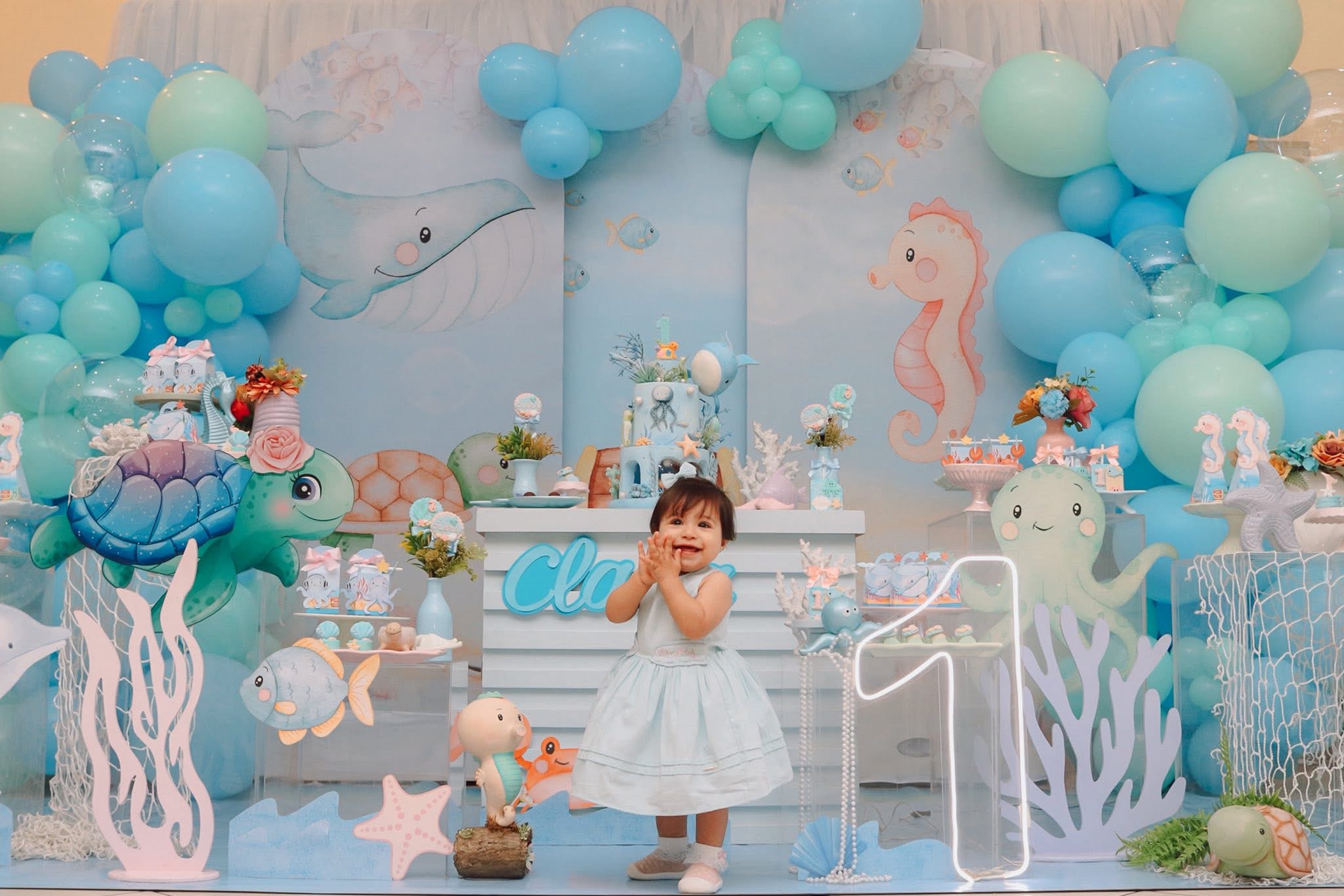 A pequena sereia Bella encantou todos com sua festa no fundo do mar. Cores, bolo e muita fofura!